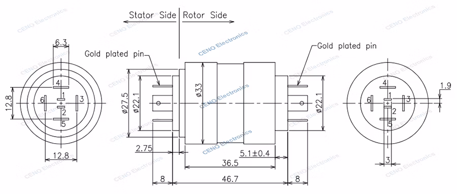 Pin Connection Slip Ring with 6 circuits Electrical power and signal